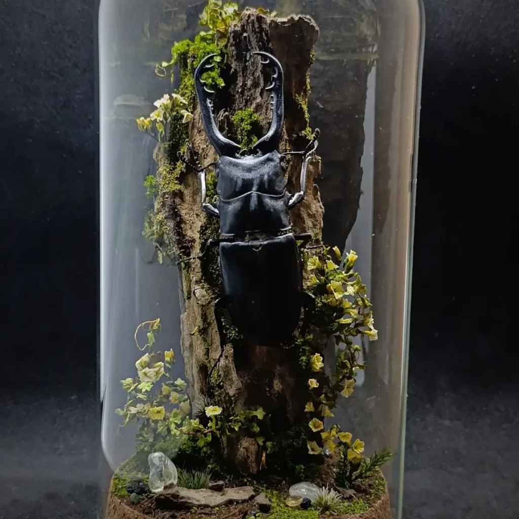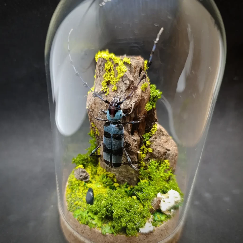 Une partie des spécimens provient de mon propre élevage, aucun insecte n’est prélevé par chasse, et j’utilise des végétaux naturels et des minéraux véritables pour une qualité authentique.
