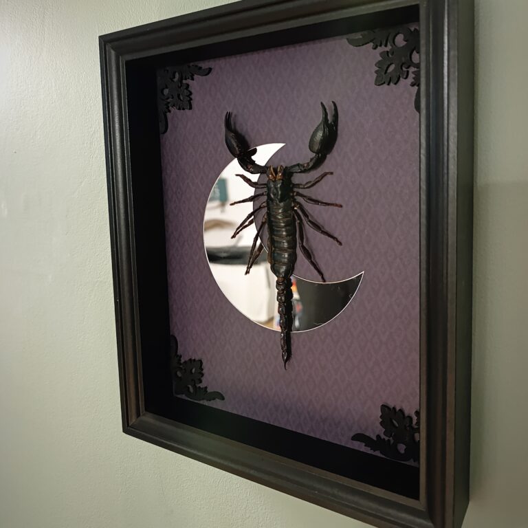 Découvrez des cadres entomologiques faits main, mettant en valeur des insectes naturalisés dans des compositions élégantes. Des pièces uniques pour une décoration originale et raffinée.