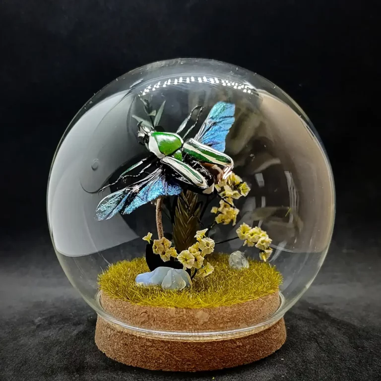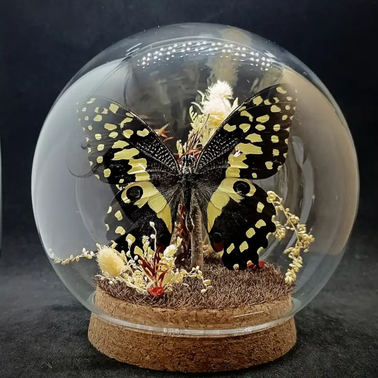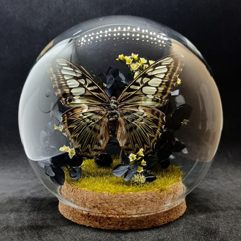 Découvrez ma collection de globes entomologiques : des pièces uniques et éthiques qui subliment la beauté des insectes sous des dômes en verre, dans des compositions naturelles et élégantes.