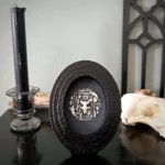 Conçu comme une pièce de cabinet de curiosités, ce cadre trouve aussi naturellement sa place dans une décoration intérieure épurée, un autel personnel, une étagère naturaliste ou tout espace où l’on souhaite introduire une présence discrète, organique et symbolique. Sa forme graphique et son format compact en font un objet facile à intégrer, seul ou au sein d’une composition plus large.