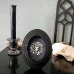 Conçu comme une pièce de cabinet de curiosités, ce cadre trouve aussi naturellement sa place dans une décoration intérieure épurée, un autel personnel, une étagère naturaliste ou tout espace où l’on souhaite introduire une présence discrète, organique et symbolique. Sa forme graphique et son format compact en font un objet facile à intégrer, seul ou au sein d’une composition plus large.