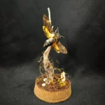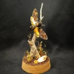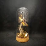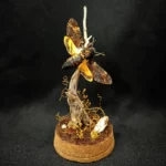 Ce diorama évoque une scène botanique délicate, où le papillon semble suspendu dans un écrin de nature figée. Chaque élément est choisi pour sa texture et sa symbolique, créant une atmosphère à la fois mystérieuse et poétique.