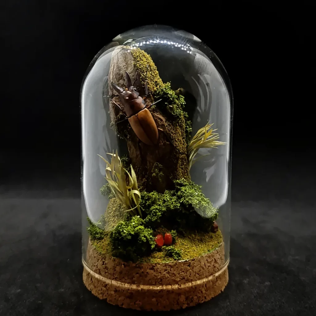 – 🎨 Style : cabinet de curiosités, diorama entomologique, décoration forestière
