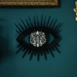 Plongez dans une nouvelle variation de la collection Œil Ossuaire, où l’œil devient un objet de fascination entre talisman ancien et création contemporaine. Cette pièce murale unique associe matières organiques et minérales dans une composition inspirée des cabinets de curiosités et des ex-voto traditionnels.